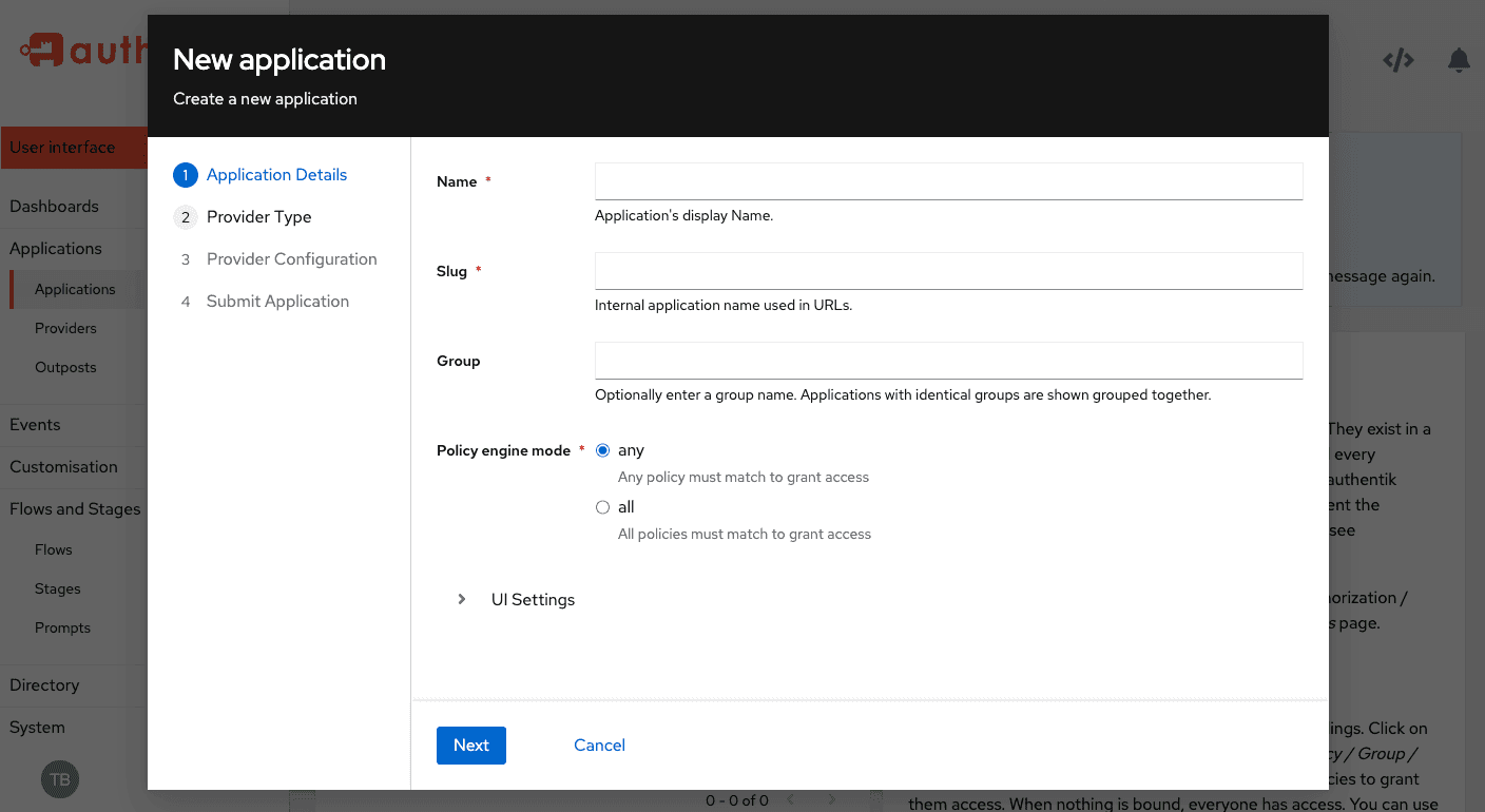 The task of adding the applications that you want authentik to authenticate is about to get a lot easier; we have a new wizard that combines the process of defining a new provider and a new application into one single task. This new wizard saves many steps and streamlines the process. Look for it in preview mode in our current 2023.10 release (navigate to the Applications page in the Admin UI), and let us know your thoughts. We will continue tweaking it, specifically the multi-select functionality, but feedback is always welcome!