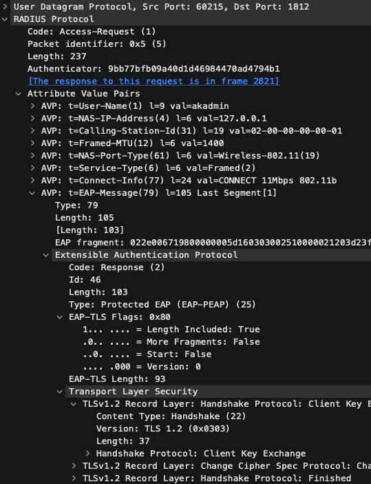 This is also when I noticed that I had quite a bit of code refactoring to do, to be able to support parsing EAP within EAP. Previously the codebase assumed EAP to always be the outer protocol so there was quite of dis-entangling to do. Similarly, this also meant making the ability to "Negotiate inner EAP protocols" needed to be accessible for other protocols. There go another couple hours...